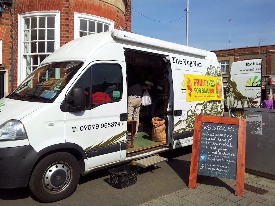 @CultivateOxford‘s VegVan took up what is to be its regular position outside Barclays Bank on Saturday. They will be there every Saturday from 10 to 4.