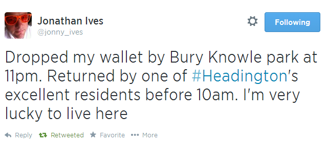My favourite Headington-related tweet of the week: