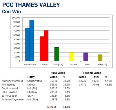 Here’s a very quick chart of the results of the PCC election in the Thames Valley. These figures are now confirmed as final.